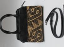 This gorgeous bag woven in borneo, leather accents zipper closure. Handwoven on both sides. Different patterns available.